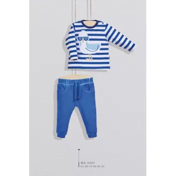 Dvodelni komplet za dečaka sadrži donji deo i majicu.