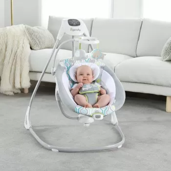 Ingenuity Simple Comfort ljuljaska je posebno dizajnirana kako bi za roditelje dan bio jednostavniji i prakticniji. Inovativno sedsite sa pdoesivim naslonom okrece se za 180 stepeni kako bi beba bila u sto boljem pogledu. Laki i cvrst okvir ima tockice i rucku kako bi sto jednostavnije transportovali ljuljasku na zeljeno mesto. Sa kontrolne table Gentle Touch prilagodite bebino umirivanje vibracijom,8 melodija, 3 zvuka prirode i beli sum. Podesava se tajmer na 30,45 ili 60 minuta. Tehnologija Vhisper Kuiet omogucava bebi da se ljulja u potpunoj tisini.