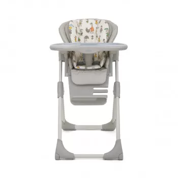 Sedište i ram sa kompaktnim sklapanjem. 7 pozicija visine. 3 pozicije visine naslona za noge. 3 pozicije naslona za ledja. 2 pozicije nagiba naslona za noge. 3 pozicije tacne sa držačem za čašu. Tacna se može lako skinuti i prati u mašini za sudove. Uložak-jastuče se lako skida i pere. Sedište se takodje lako skida i može se očistiti brisanjem vlažnom krpom. Integrisani točkovi u prednjim nogicama. Mekani zaštitni pojas sa sistemom 5 tačaka.
